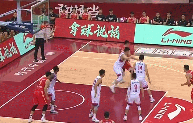 大眼瞪小眼,哥俩都不服啊。首节8分半,一看邹雨宸合理冲撞区这么深的位置要到了球,张云鹏一顿挤眉弄眼,郭凯心领神会急忙赶来包饺子,但没成想,大肘子直接上对抗一阵乱怼,吃不消的郭凯大喊一声“哎呦,窝X”,只能目送皮球入网。担任解说嘉宾的王仕鹏指导急忙补了一句:“邹雨宸打郭凯,还是比较占优势的啊~!”就不信你这个邪!首节末,孙鸣阳切入篮下,得球之后硬着八一内线就要直接上篮,这不是不给我大肘子面子么?劈头盖脸毫不客气,被邹雨宸一巴掌直接扇飞,血性十足。